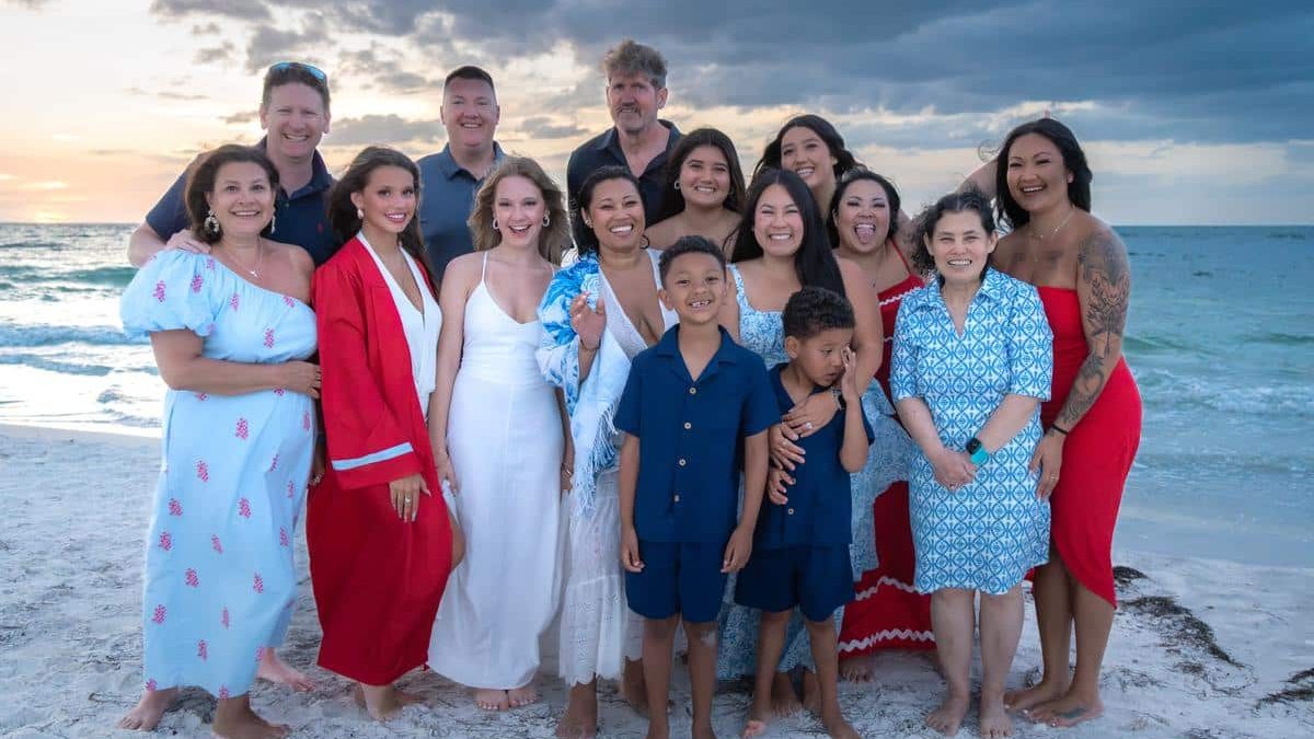 This portfolio session took place at Bean Point on Anna Maria Island, one of the most scenic and sought-after beach locations on Florida’s Gulf Coast. A family of 15 gathered here during their vacation to capture a full sunset family beach photography session, along with a special graduation milestone shoot for their daughter.
